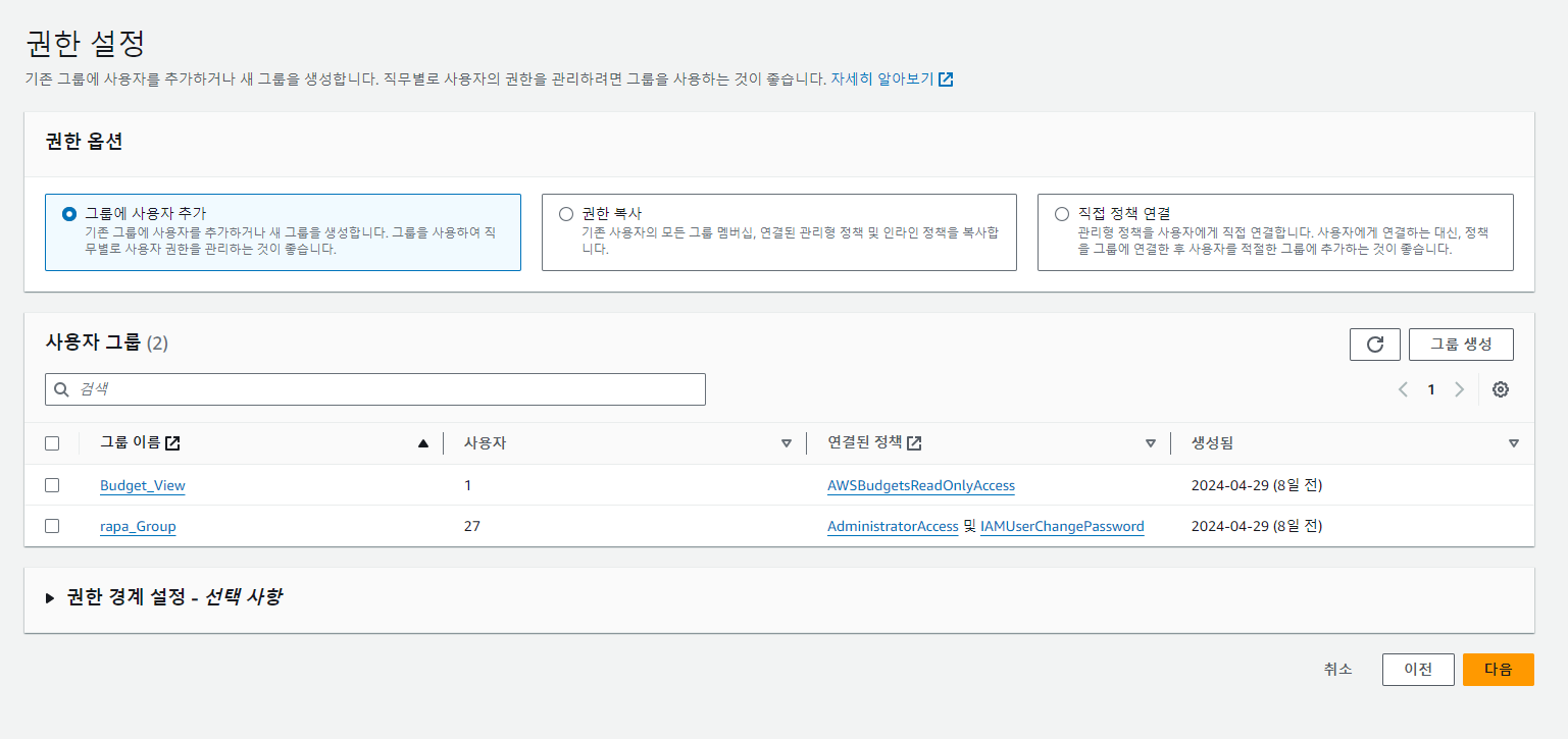 접근 허가란 AWS 사용자가 어떤 기능을 사용할 수 있는가를 관리하고 허가하는 것이다.
