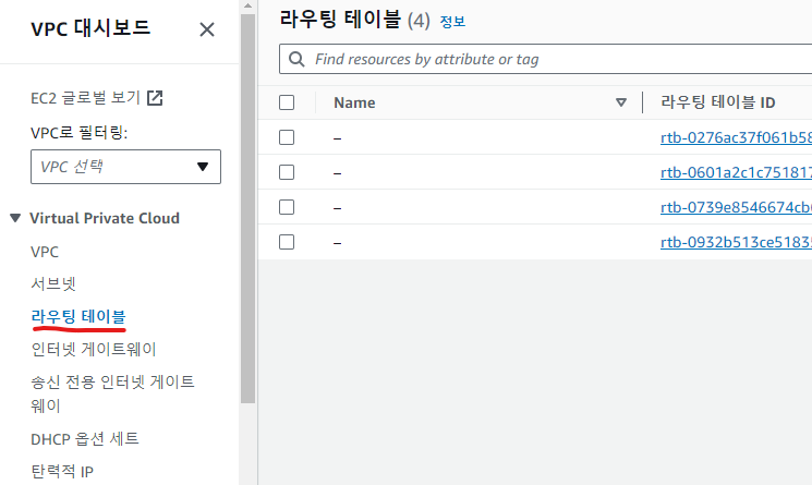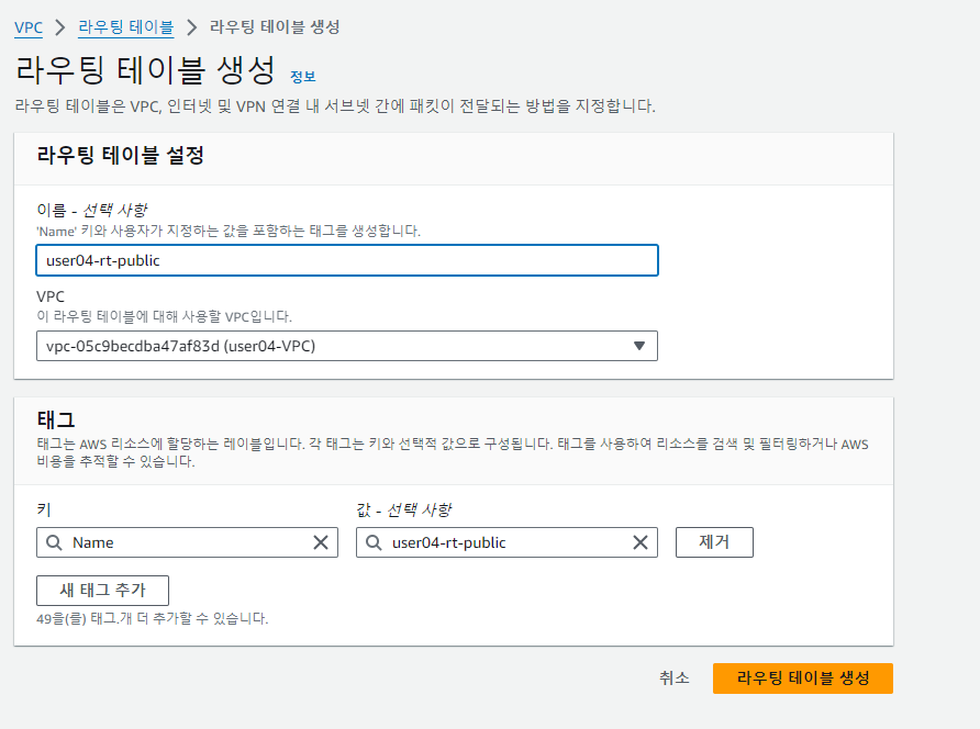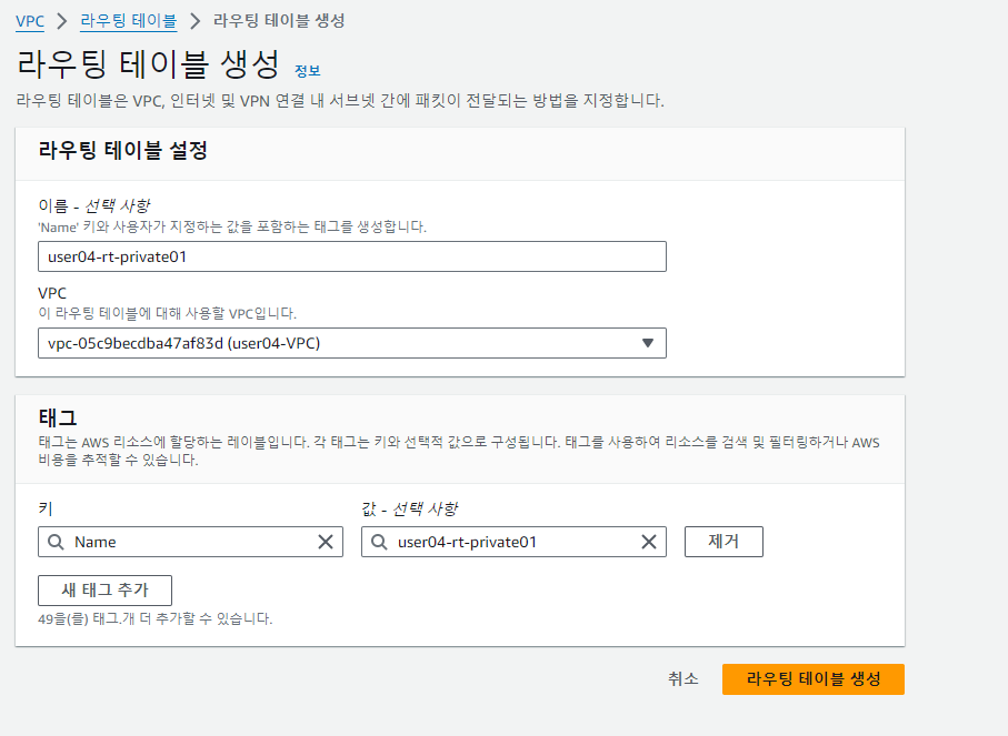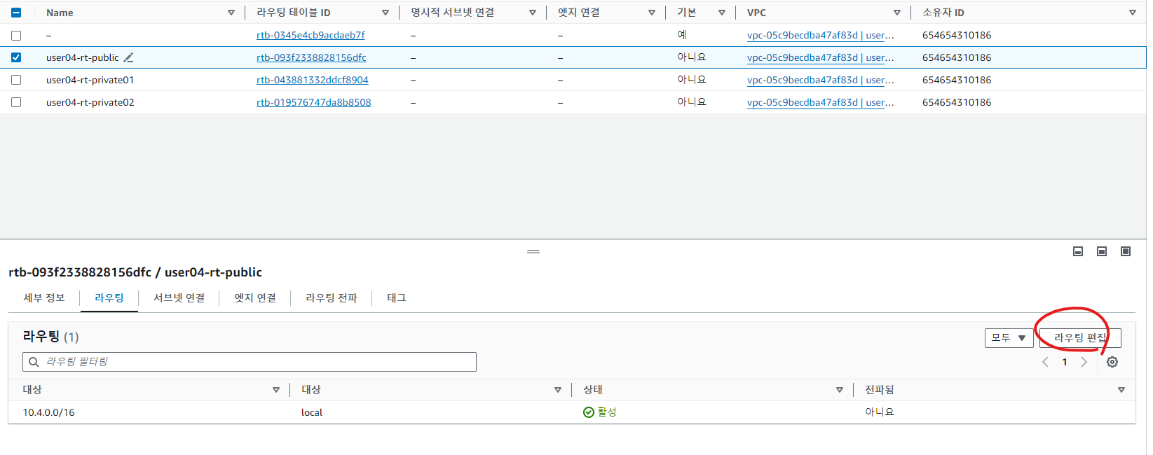 똑같은 방법으로 user04-rt-private01, 02 도 설정해준다.