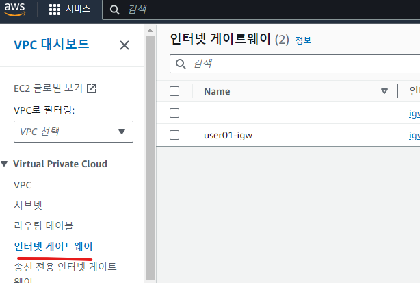 인터넷 게이트웨이 생성