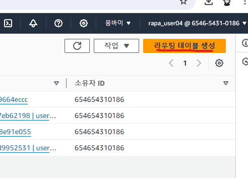 라우팅 테이블 생성