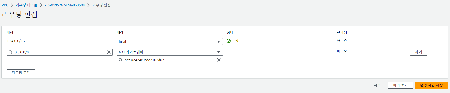 user04-rt-private02 | 0.0.0.0/0 NAT 게이트웨이 user04-ngw-02 | user04-subnet-private02