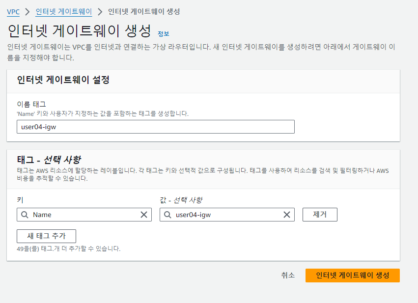user04-subnet-public02 서브넷 CIDR 블록 10.4.16.0/20 가용영역 c