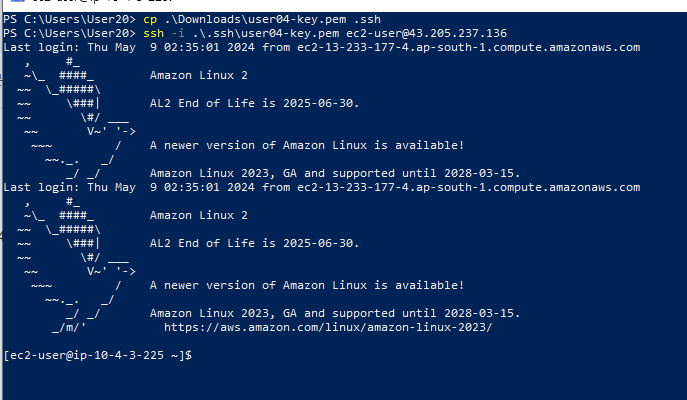 ssh -i .\.ssh\user04.pem ec2-user@43.205.237.136