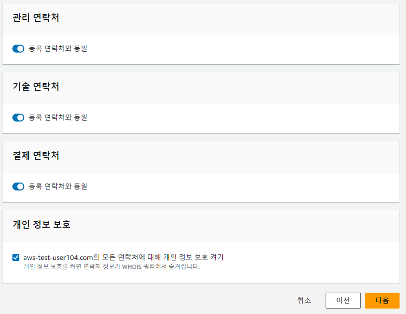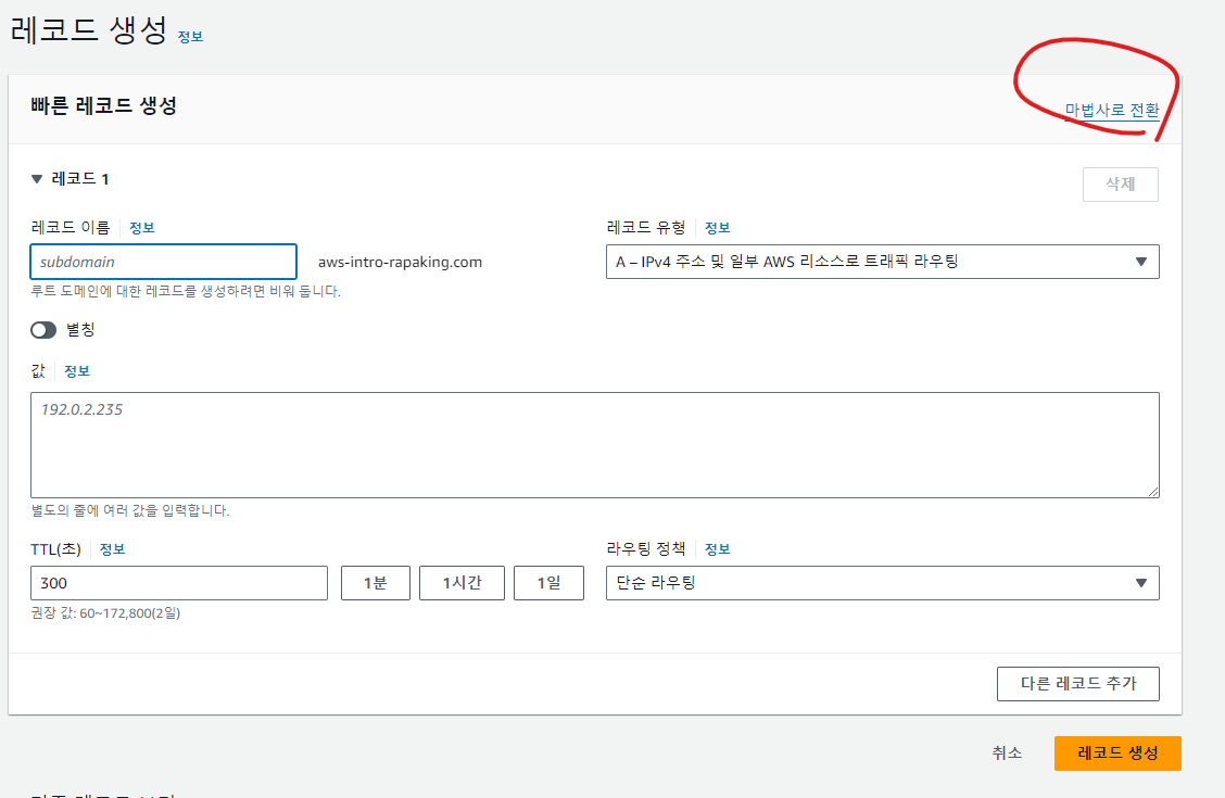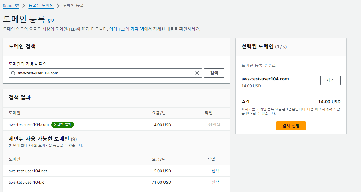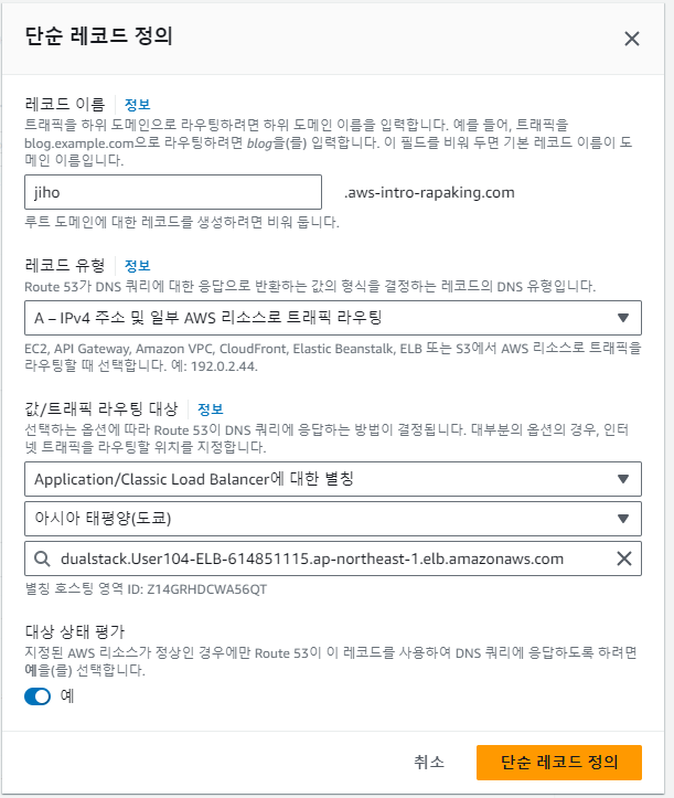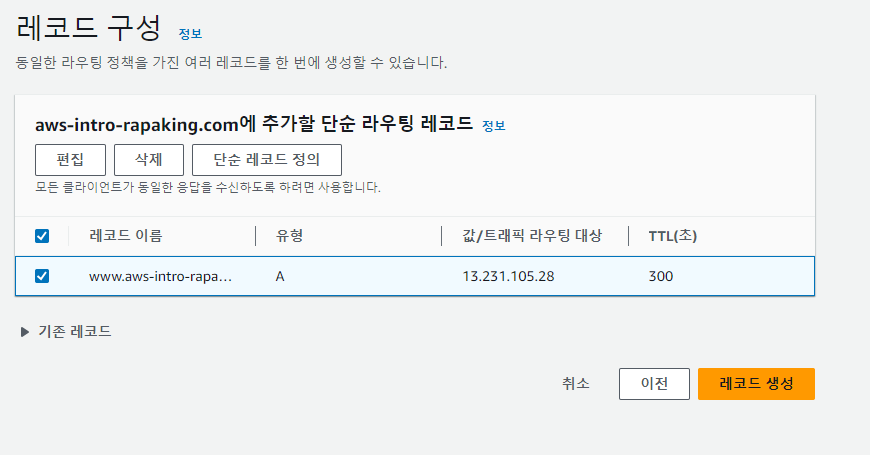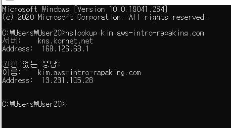 AWS/실습 AWS 5 by JihoK 2024. 5. 16. 커스텀 도메인과 DNS Router 53 - 도메인 이름 취득하기 단체 환경이라 aws-intro-rapaking.com 으로 진행했다. www를 kim으로 바꿔서 정의하겠다. 작동 확인 로드 밸런서도 추가한다. 작동 확인 공유하기 게시글 관리 JHNet 'AWS > 실습' 카테고리의 다른 글 AWS 4 (0) 2024.05.13 AWS 3 (0) 2024.05.09 AWS 2 (0) 2024.05.08 AWS 1 (0) 2024.05.07 관련글 AWS 4 AWS 3 AWS 2 AWS 1
