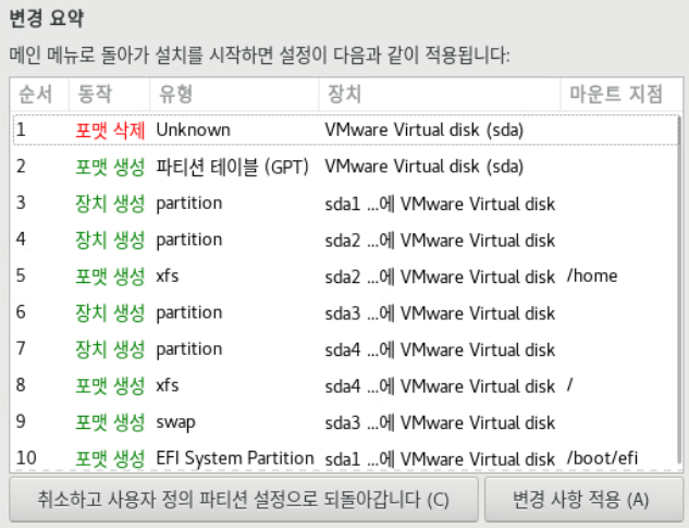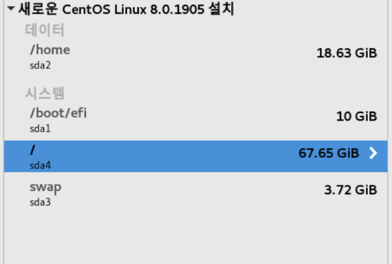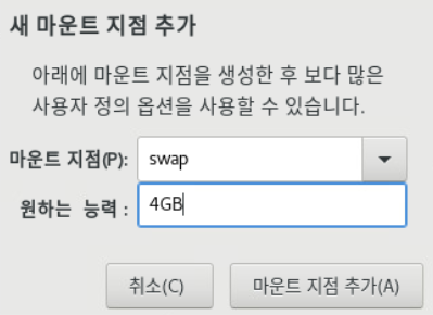 | /boot | 4GB 권장 | 부팅 커널이 저장 |