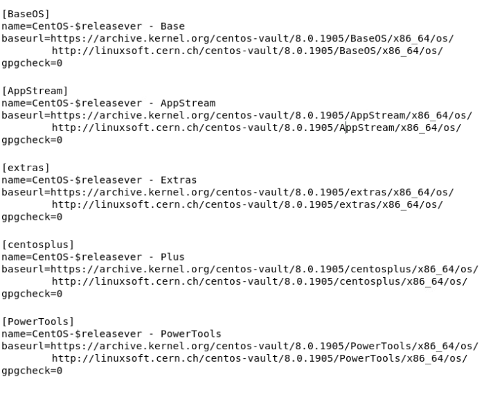 gpgkey는 gpgcheck가 1일일 경우 아스키 gpg가 들어 있는 저장소의 url이 적혀 있으면 된다.