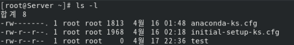 | 파일유형 | 파일 허가권 | 1 | 소유자 이름 | 소유 그룹이름 | 파일 크기 | 마지막 변경일 | 파일 이름 |