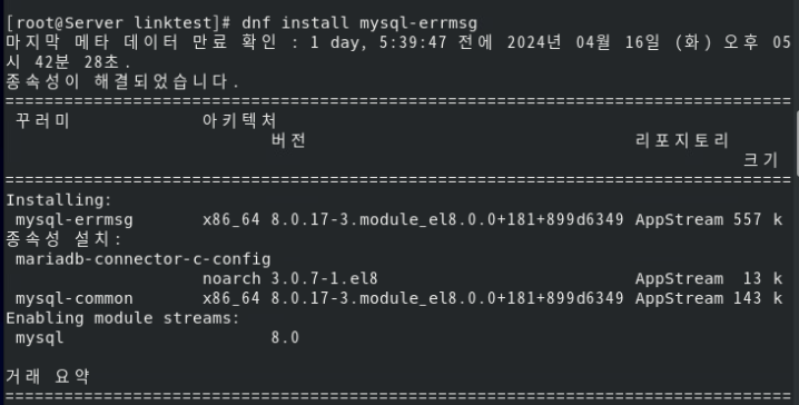 dnf -y install mariadb 라는 데이터 베이스 패키지를 설치해 보자.