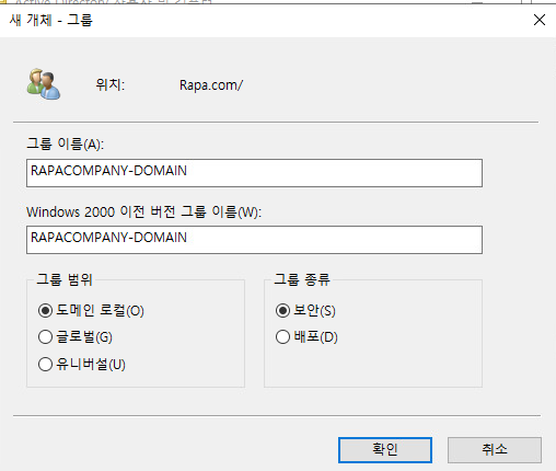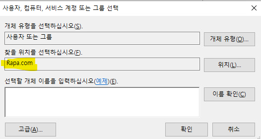 글로벌 도메인 그룹 더블클릭 - 구성원 - 추가 - 개체 이름칸에 rapauser01 적고 확인 - 확인