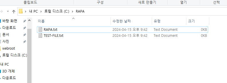 C:\RAPA\ 폴더 생성하고 아무 파일이나 넣어주자