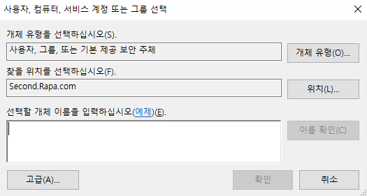 #방금 추가한 second유저는 추가가안된다.글로벌 그룹에는 자신의 도메인 사용자만 가입할 수 있어서 다른 도메인 사용자는 검색이 안된다.