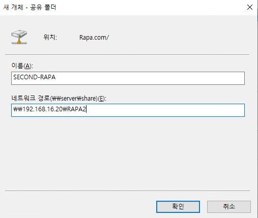 파일탐색기 검색창에 \\192.168.16.10\RAPA