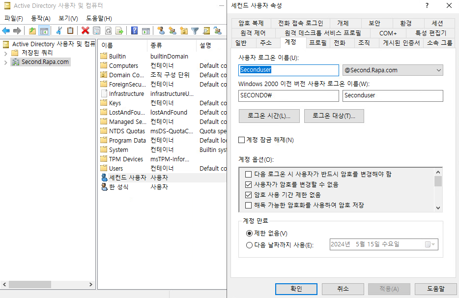 SECOND 의 AD 사용자및 컴퓨터로 들어가자