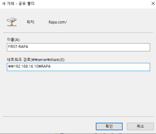파일탐색기 검색창에 \\192.168.16.10\RAPA