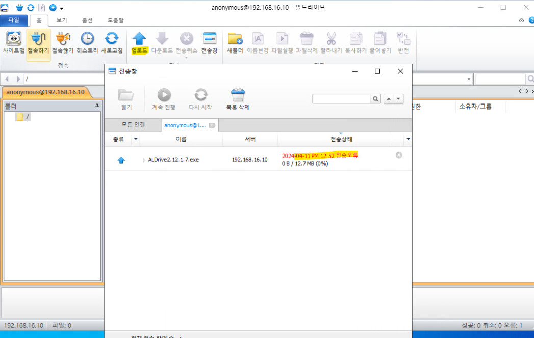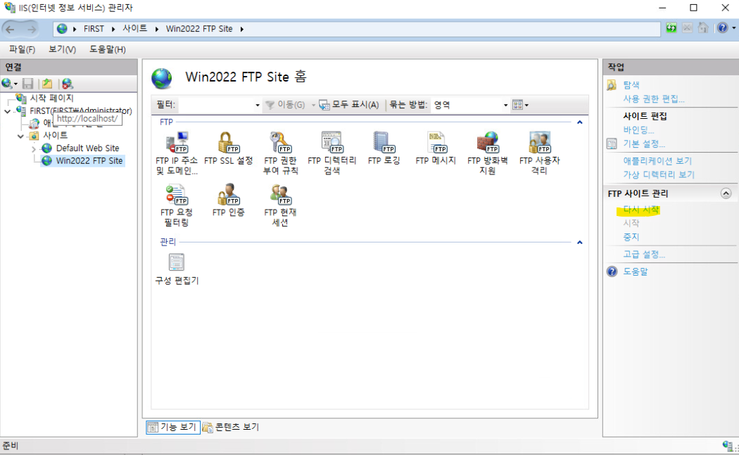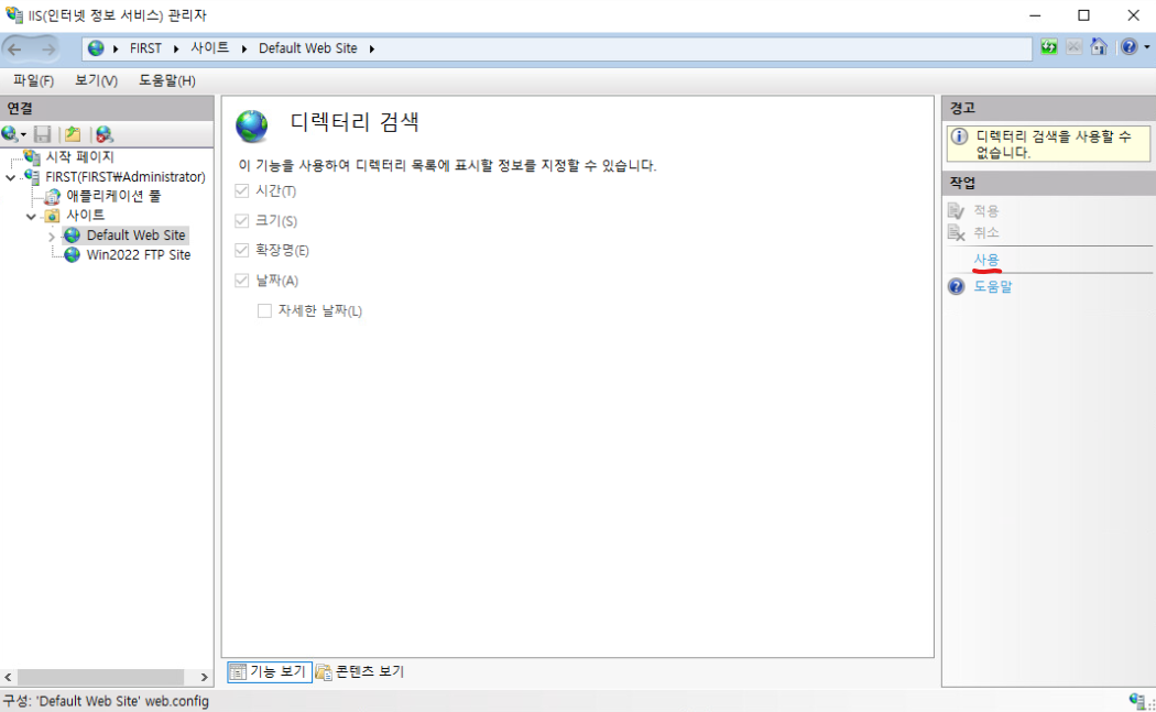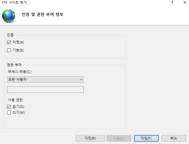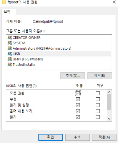 FTP 사이트를 추가할때 읽기권한만 체크했기때문에