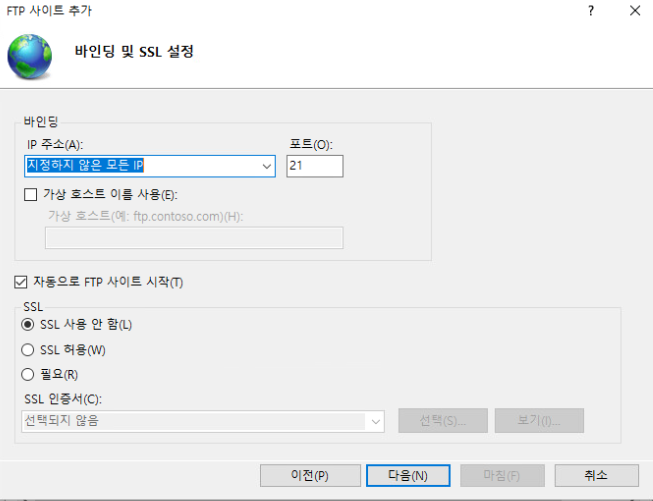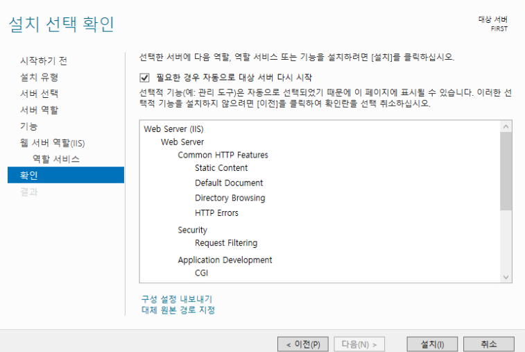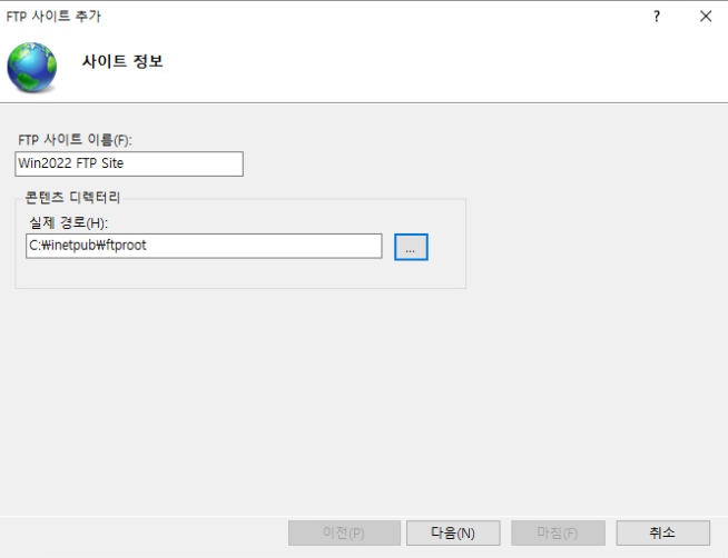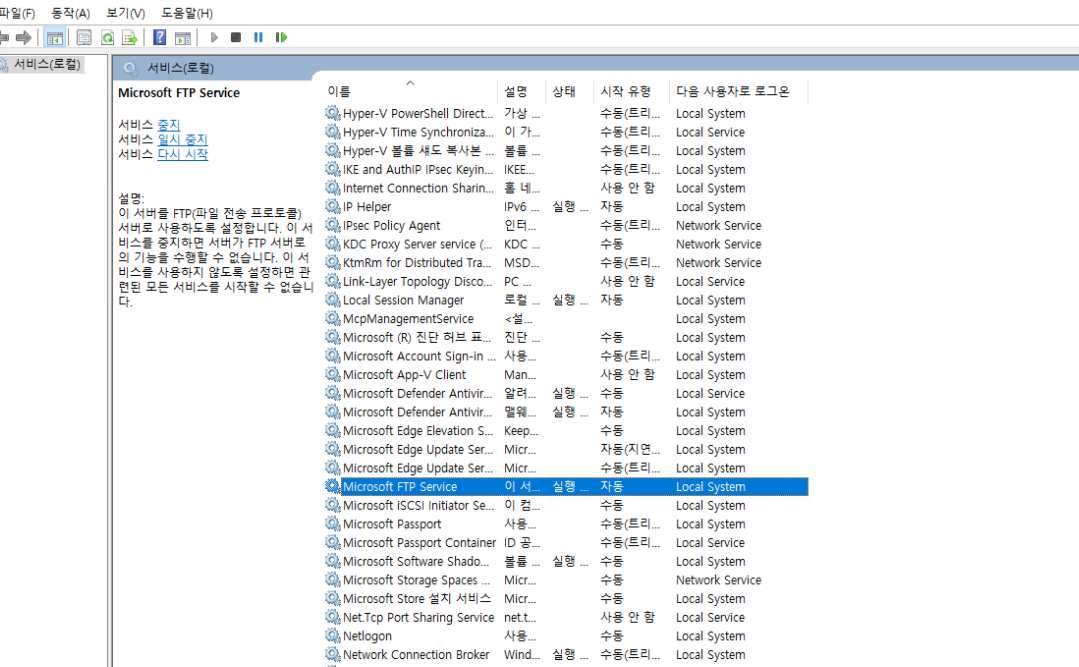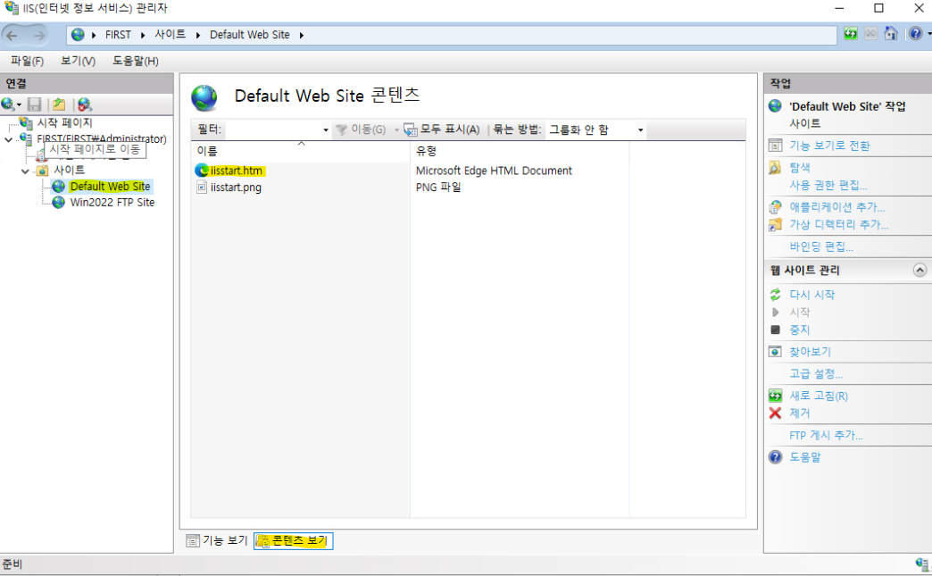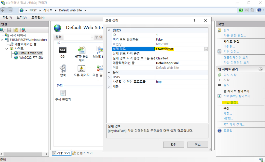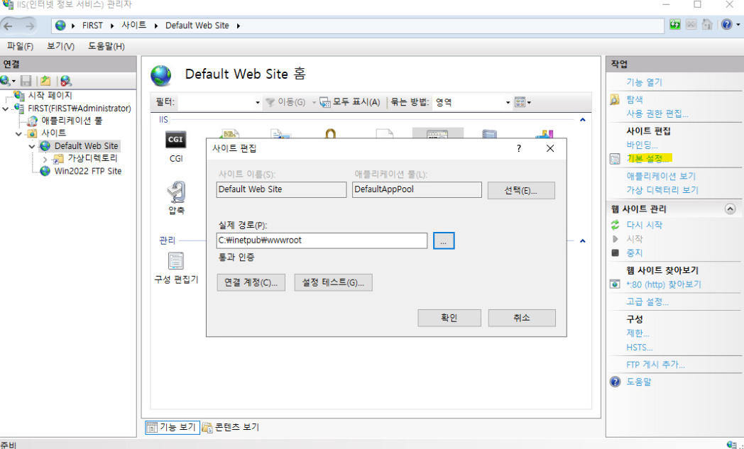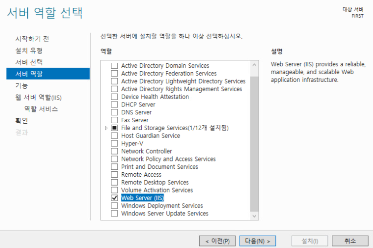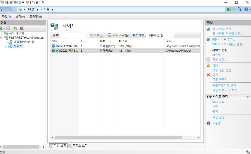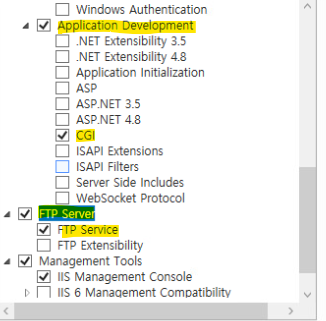 FTP 서버와 World Wide Web 서비스(HTTP) 체크 해주고 확인.