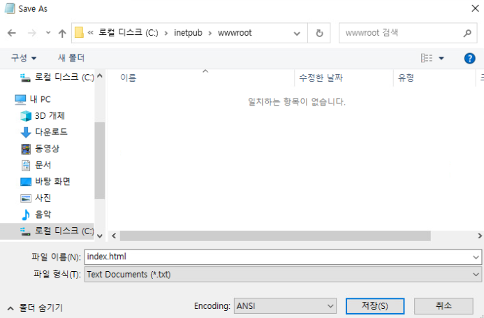 notepad로 만들어준 html이 첫 화면에 뜨는 모습