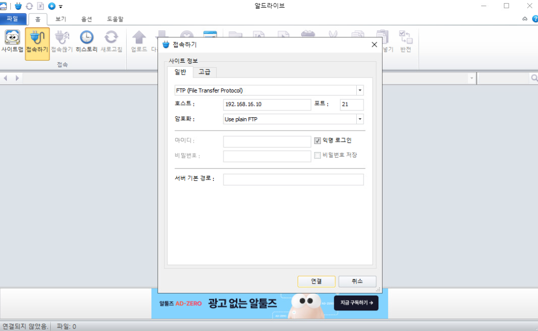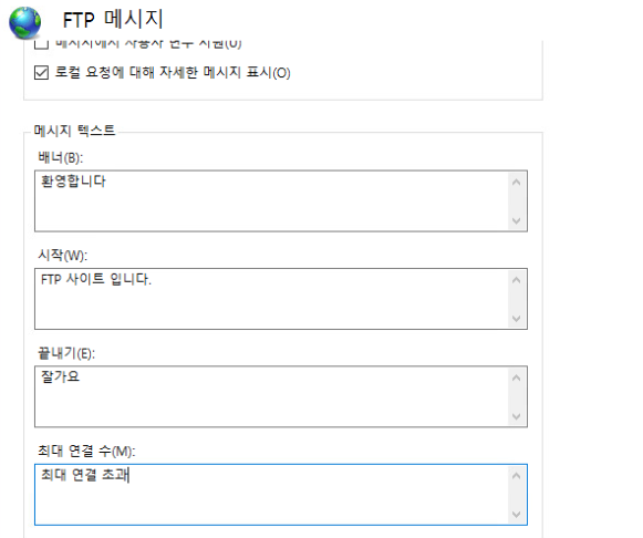 다음은 FTP 서버에 접속이나 종료했을때 나타나는 메세지를 설정해보자.