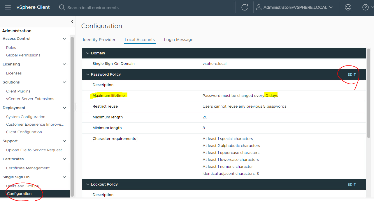 1. vCS 서버를 생성할때 만든 SSO 인증 도메인