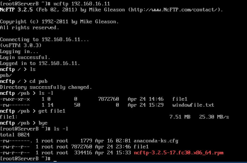 Server B 에서 텍스트 모드에서 비교적 편리하게 사용할 수 있는 ftp 클라이언트인 ncftp를 이용해서
